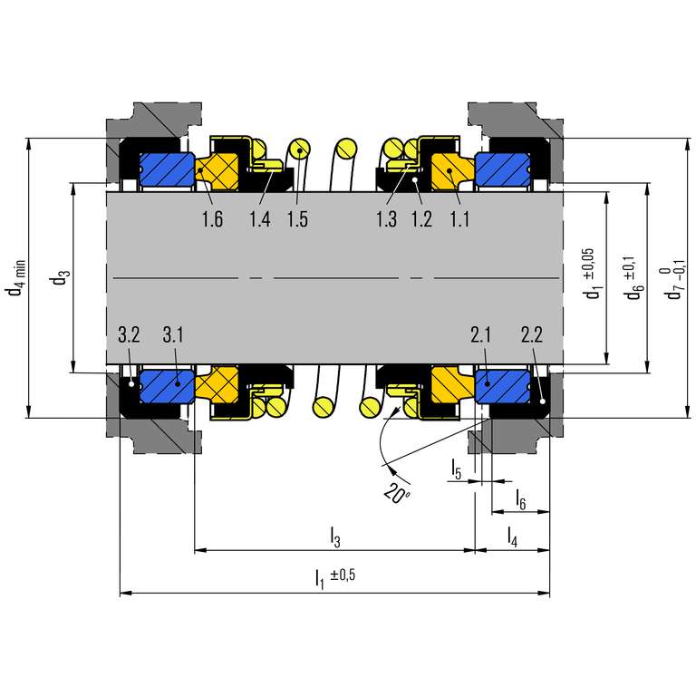 Items and designations same as for BT-PN. This is a dual sela in a back to back arrangement with a BT-PN or BT-PNL base. Therefore, this seal combines the advantages of the PN/PNL with the advantage of a double seal.